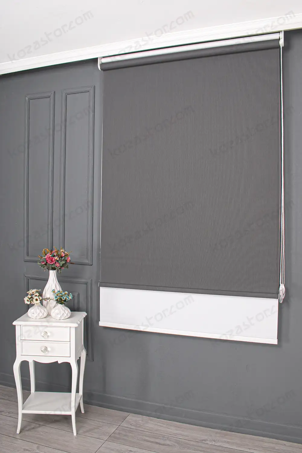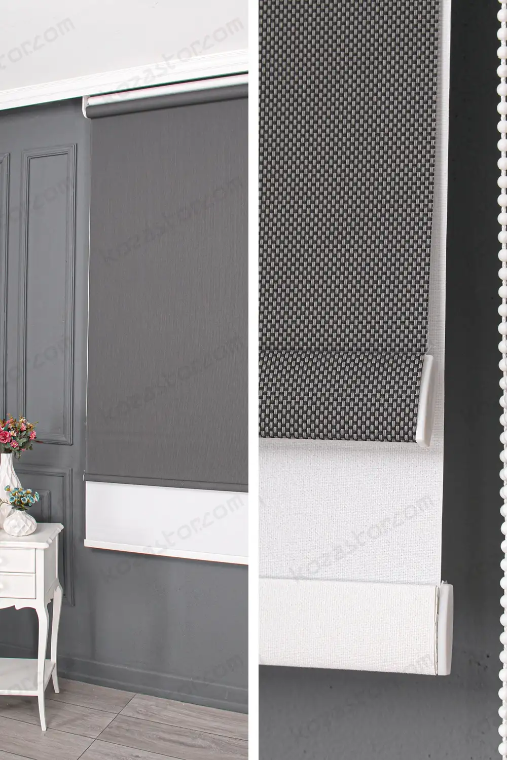 Çift Mekanizmalı Stor Perde Koyu Gri