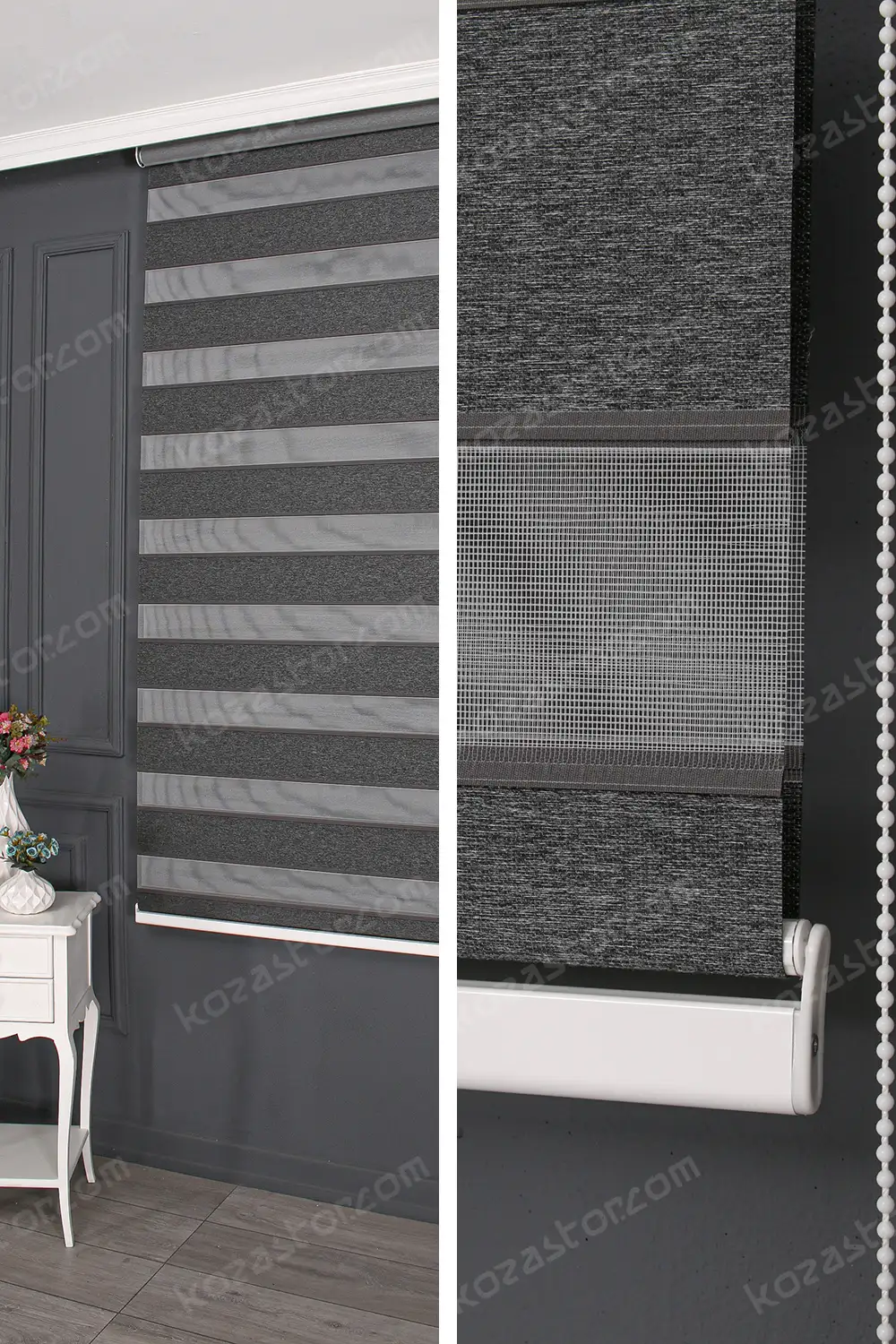 Zebra perdeler, zarif tasarımları ve pratik kullanımıyla evinizi veya işyerinizi mükemmel bir şekilde tamamlar. Ayarlanabilir şeffaflık seviyeleri sayesinde istediğiniz miktarda ışığı içeri alabilir ve dışarıdan bakışları engelleyebilirsiniz. Estetik ve işlevsellik arayanlar için ideal bir tercih!