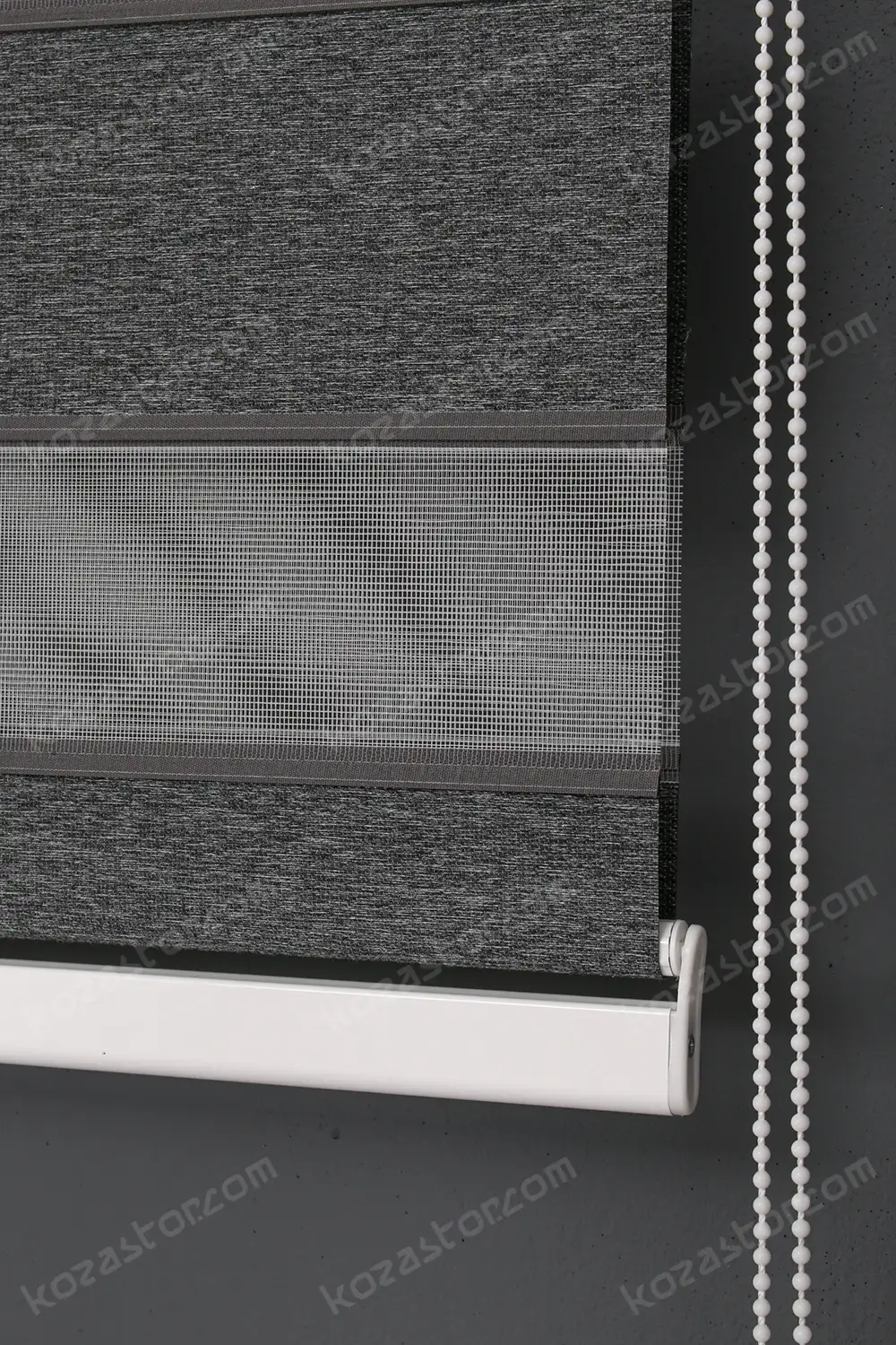 Güneşi filtre edici, farklı renklerde kendine özgü apreli bir kumaşı olup, kasa üzerinde bulunan özel mekanizma rulosuna sarılı kumaşı