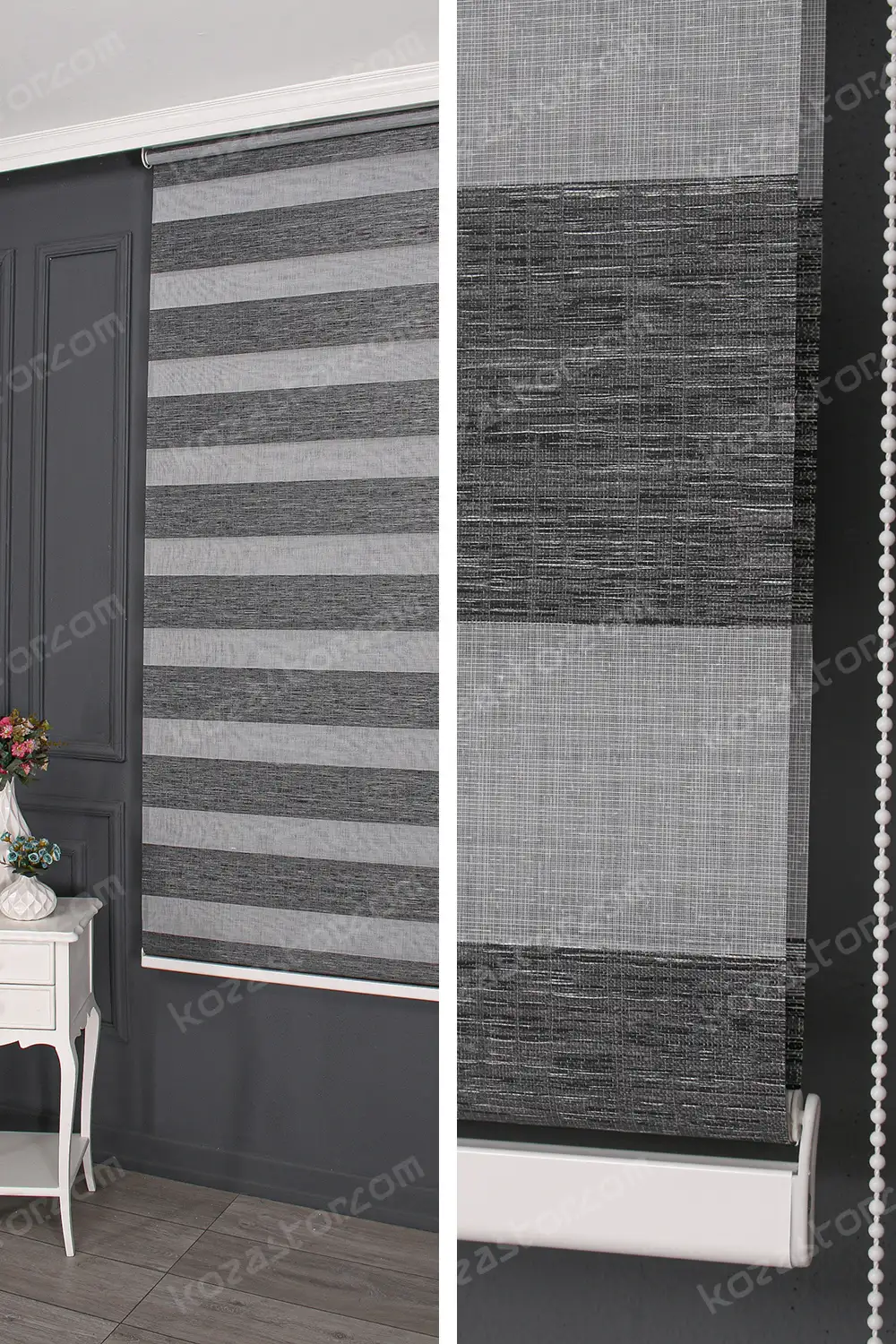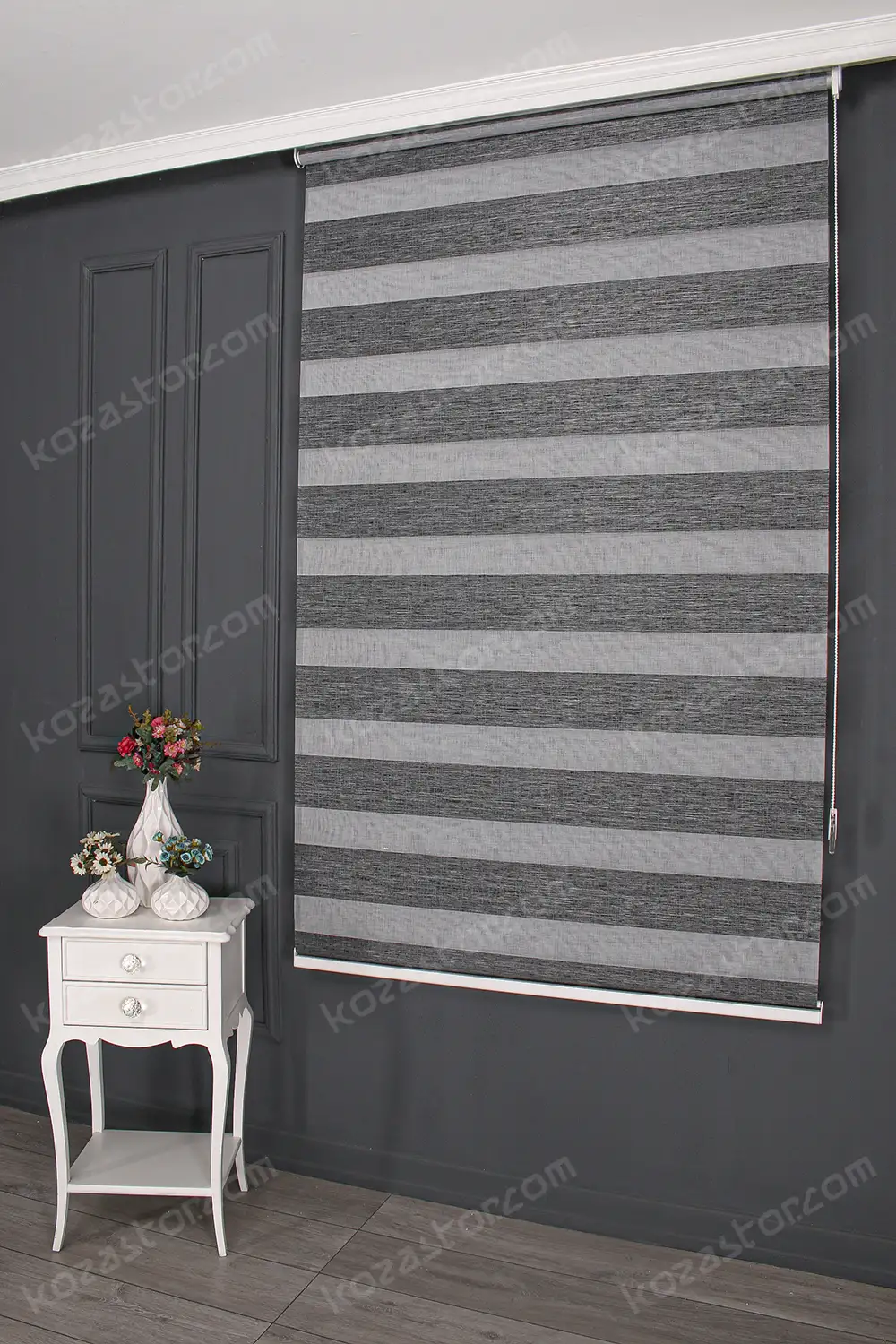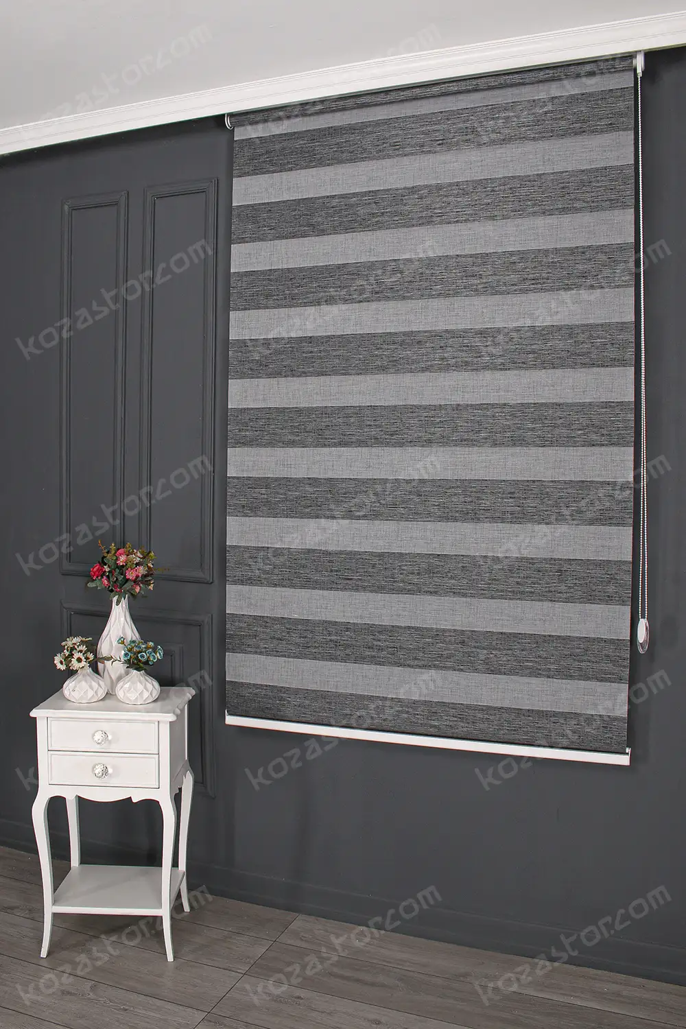 Zebra Perde Genis Dilim Jakarlı Koyu Gri 3070 V07