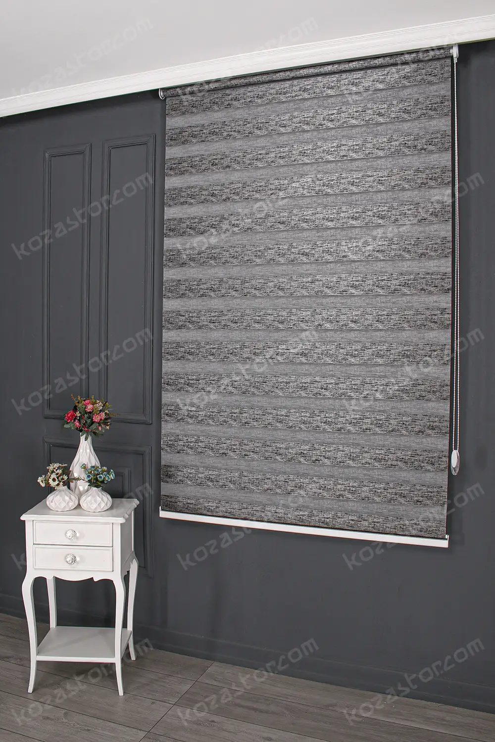 Zebra Perde Jakarlı Koyu Gri 3090 V08
