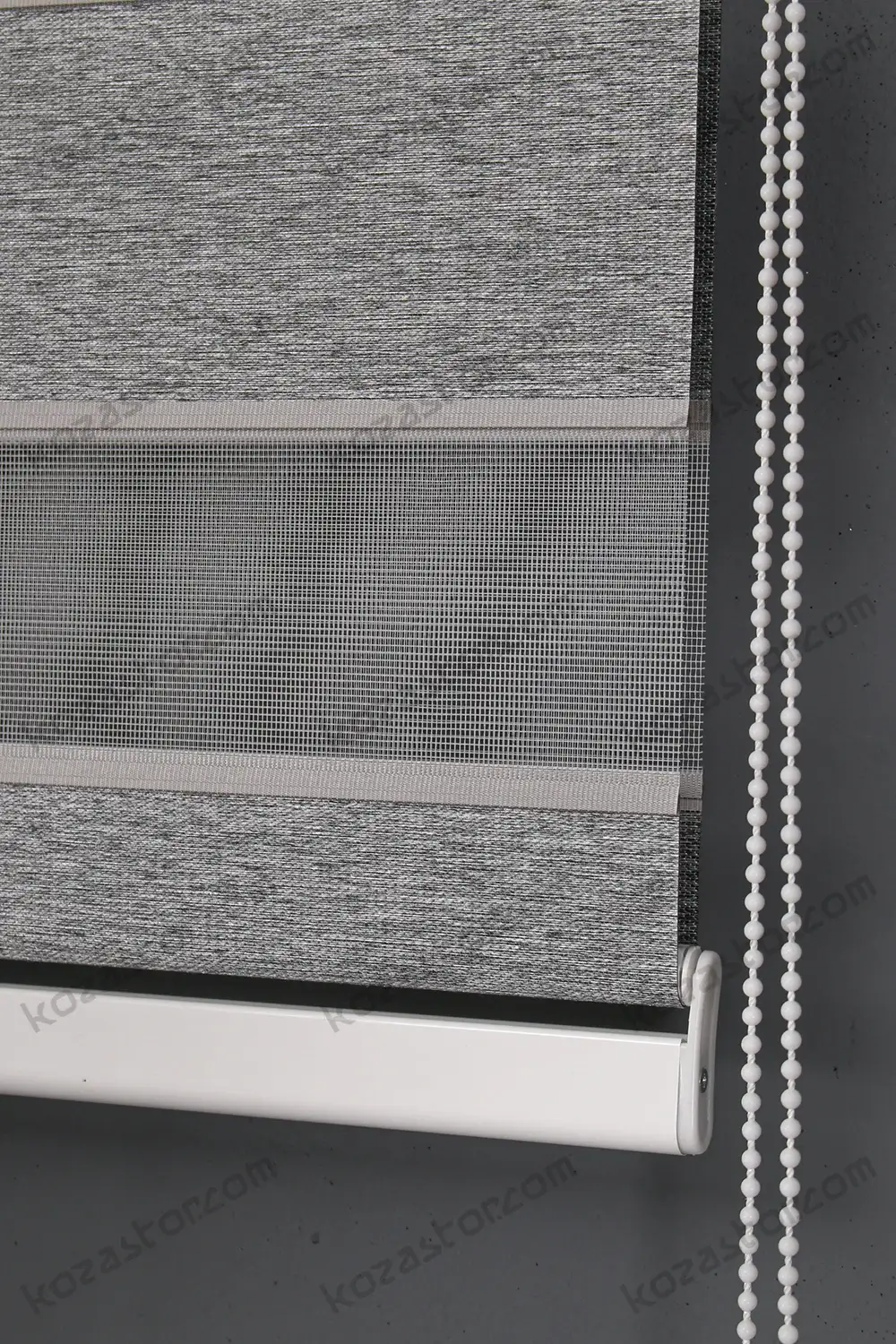 Güneşi filtre edici, farklı renklerde kendine özgü apreli bir kumaşı olup, kasa üzerinde bulunan özel mekanizma rulosuna sarılı kumaşı