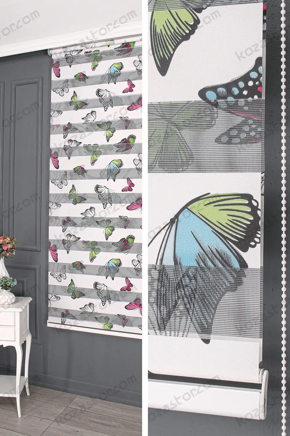 Zebra Perde Renkli Kelebek Baskılı